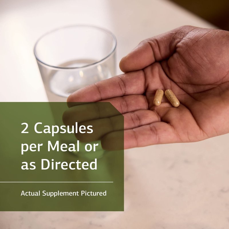 The immune support supplement is gluten-free, non-dairy, and non-soy. Adults can take two capsules per meal, or as directed.