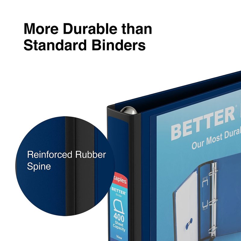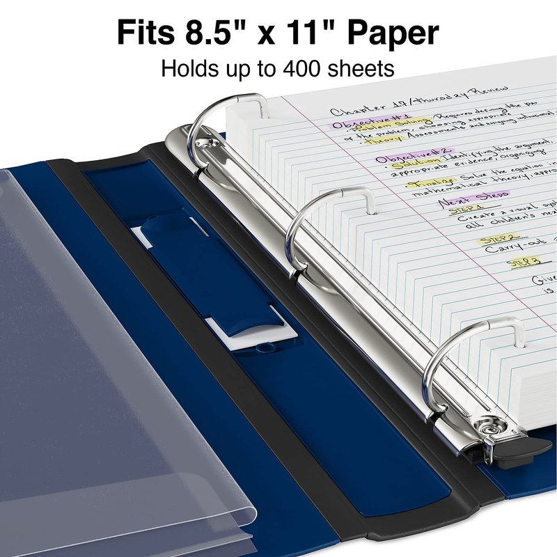 - Blue better binder to protect work documents and keep them organized. Dimensions: 11.7"H x 11.1"W x 2.4"D. Three one-touch rings keep pages secure. 400-sheet capacity for organizing large projects. Wide design accommodates letter-sized papers. One pocket for organization. Insert a custom removable spine label for easy identification of the contents.