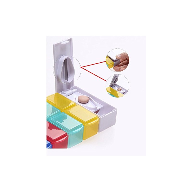 Star-Art 7 Day 2 Compartment Pill Organizer - Prescription, Medicine, Vitamin Case - Daily AM PM Travel Reminder Holder, Medication Dispenser Container - Includes Pill Cutter
