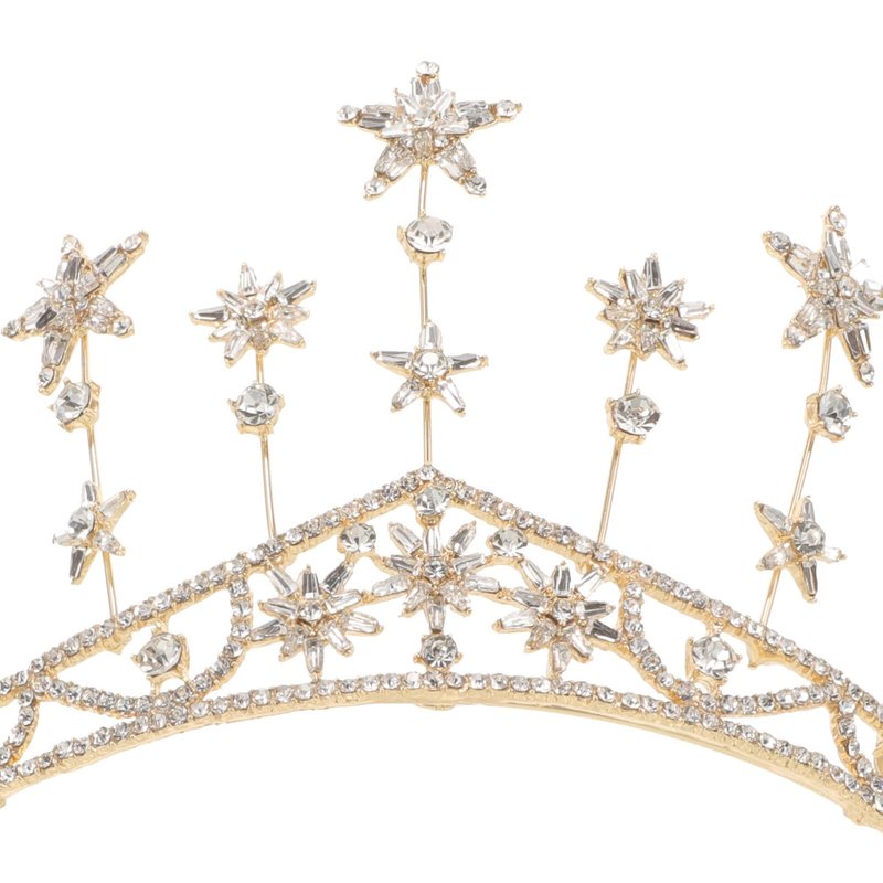 Star Crown, Bling Rhinestone Tiara Birthday Wedding Silver Star Hair for Women (Golden)