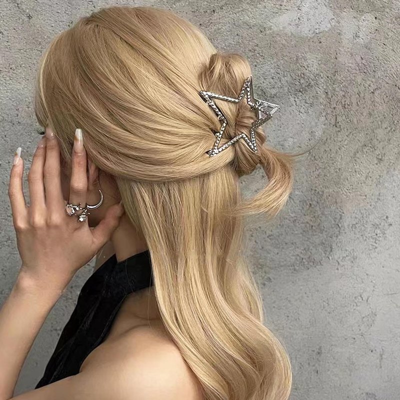 - [Secure Grip] -- Crafted with high-quality metal material, this star hair claw offers exceptional grip. It securely holds your hair in place, whether you have fine strands or thick locks, ensuring your hairstyle stays perfect throughout the day.