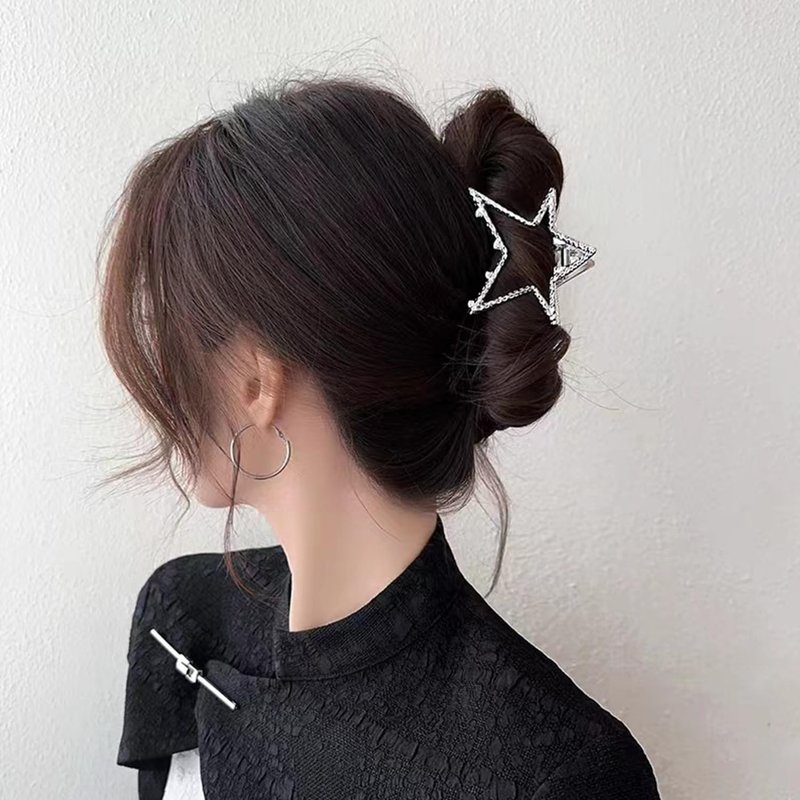 - [Secure Grip] -- Crafted with high-quality metal material, this star hair claw offers exceptional grip. It securely holds your hair in place, whether you have fine strands or thick locks, ensuring your hairstyle stays perfect throughout the day.