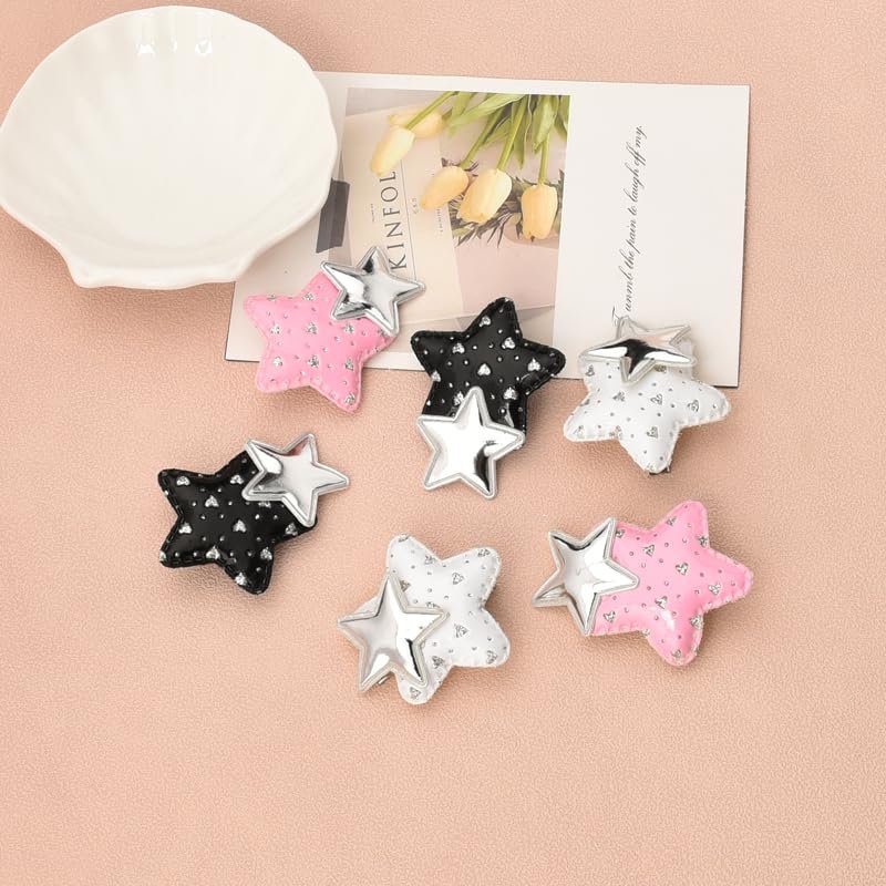 - Cute Design: The 6 hair stars clips set is adorable, you will receive 2 pink hair star clips, 2 black star hairclips and 2 white star hair barrettes, each alligator clip is a stacked design of 2 stars, very fancy and cute, beautiful decoration to highlight your hairstyle
