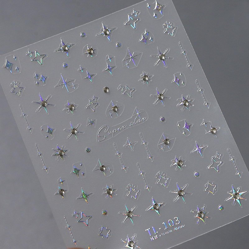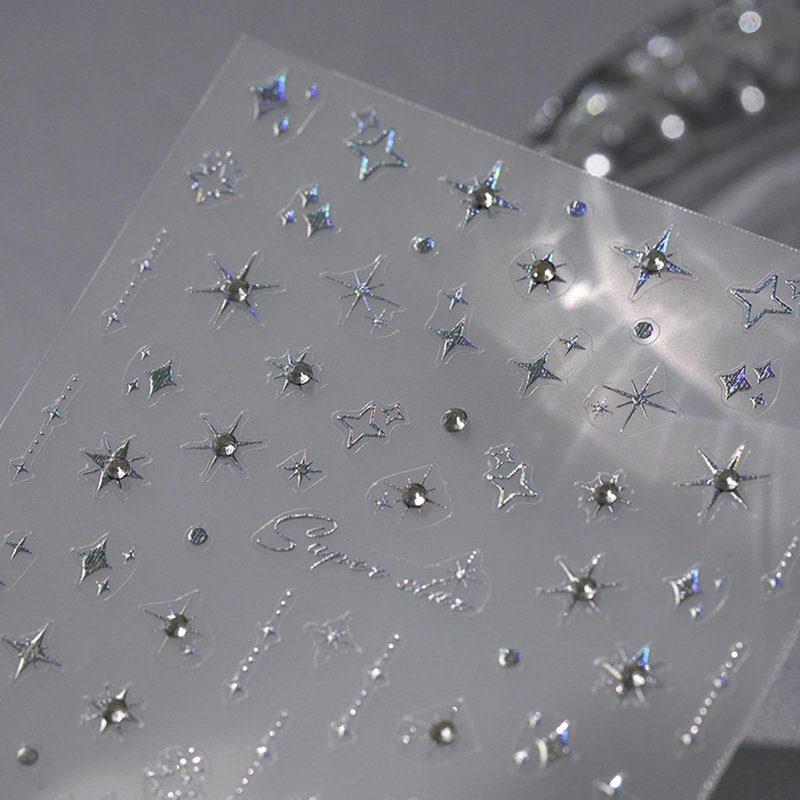 1PC 5D Embossed Nail Art Stickers Star Nail Decals Silver Stars Design Cute Nail Art Supplies Shiny Star Manicure Decoration Accessories for Women