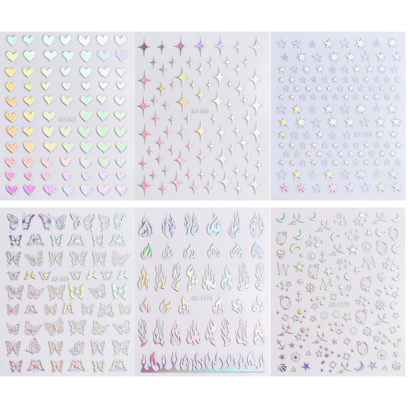 - Star Nail Stickers: You will receive 6 Sheets different patterns of holographic star nail stickers, with star, heart, butterfly, flame, and other design, bringing you a different kind of enthusiasm.