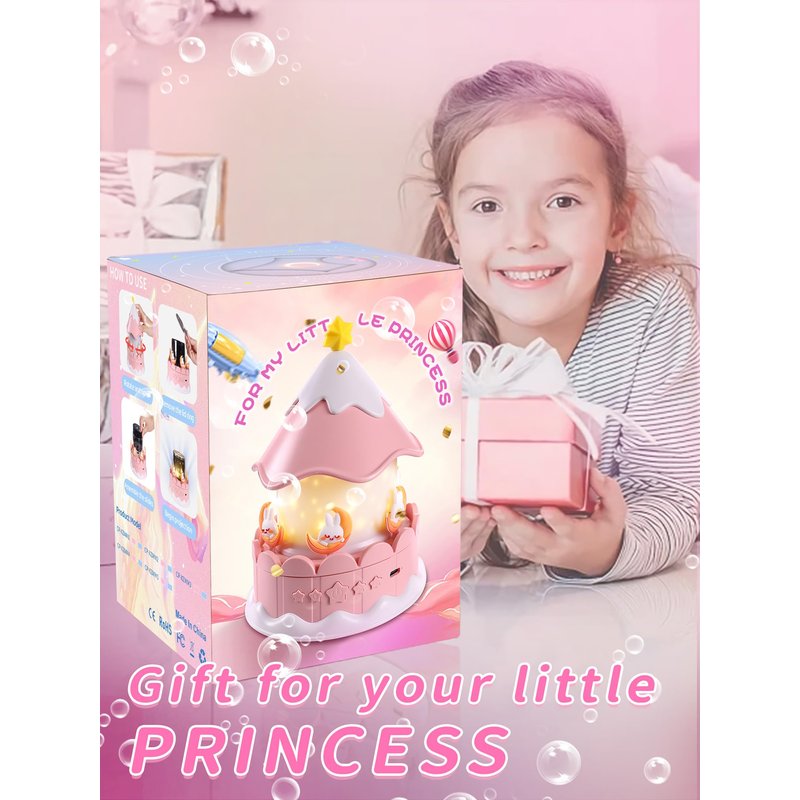 Designed with your princess in mind, this musical lamp is more than just a night light; it's a 360° rotating beacon of wonder, illuminating her room with a kaleidoscope of colors to choose from. The three levels of brightness create the perfect ambiance, from a gentle glow for bedtime stories to a vivid spectacle for playtime. The remote control makes it a breeze to switch between the vast array of scenes and songs, tailor the volume, and set the timer, all without disturbing your child's journey to sleep.