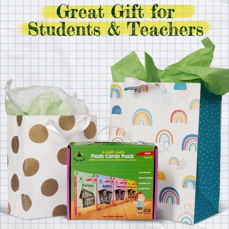 Star Right Math Flash Cards Set of 4 - Addition, Subtraction, Division, & Multiplication Flash Cards - 4 Rings - 208 Math Flash Cards Multiplication and Division, Addition, Subtraction - Ages 6+