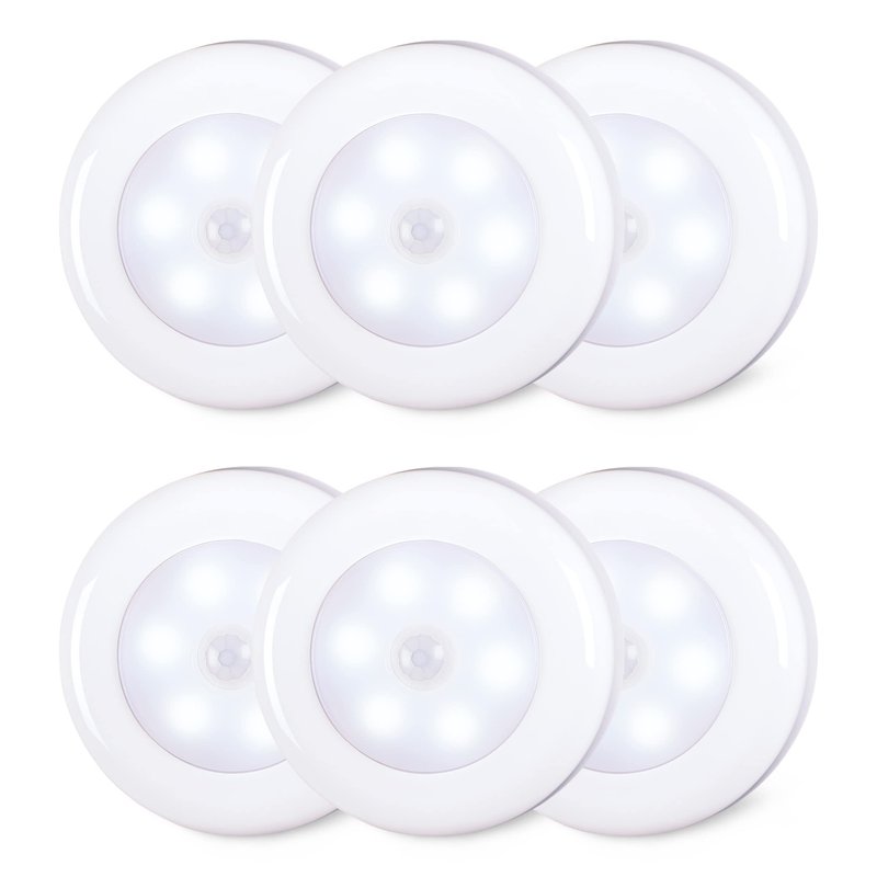 STAR-SPANGLED 6 Pack 2.8” Motion Sensor Lights Indoor AAA Battery Operated, Stick on LED Puck Light for Stairs, Under Cabinet, Closet, Cool White