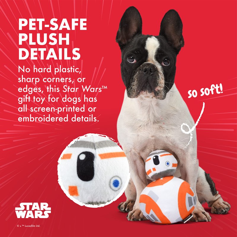 - THE CLEVER LITTLE DROID YOUR DOG WILL LOVE – This dog toy features BB-8 in a 6” plush texture with squeaker inside