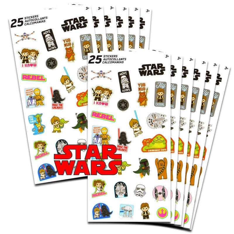 - This Star Wars stickers set includes 12 individual Star Wars sticker sheets, with each sheet having 25 stickers. Have a blast with 300 stickers in total!