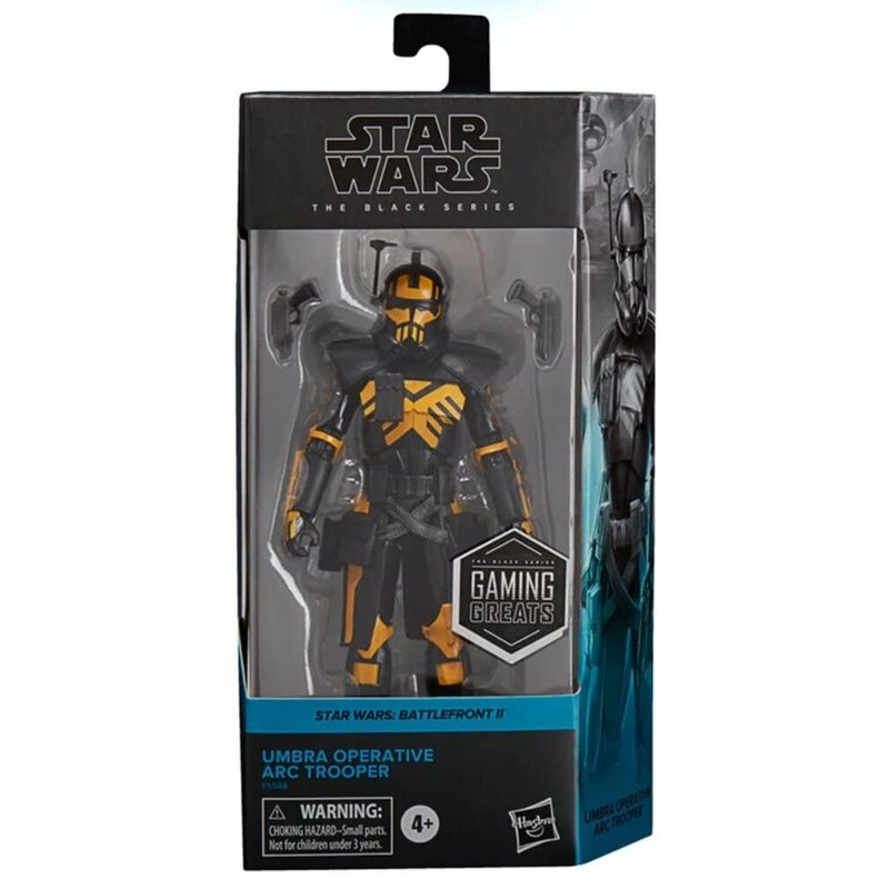 Name: Umbra Operative Arc Trooper Category: Star Wars The Black Series Gaming Greats Series: Exclusive Type: Action Figure Size: 6 Inch Manufacturer: Hasbro Description: Star Wars The Black Series Gaming Greats 6 Inch Action Figure Exclusive - Umbra Operative Arc Trooper. Safety Warning: This product may contain sharp points, small parts that are choking hazards, and other elements that are not suitable for children under 3 years of age. We receive both US and Canadian Cases. You will get either English, bilingual or trilingual carded figures based on availability. Please understand this before ordering.