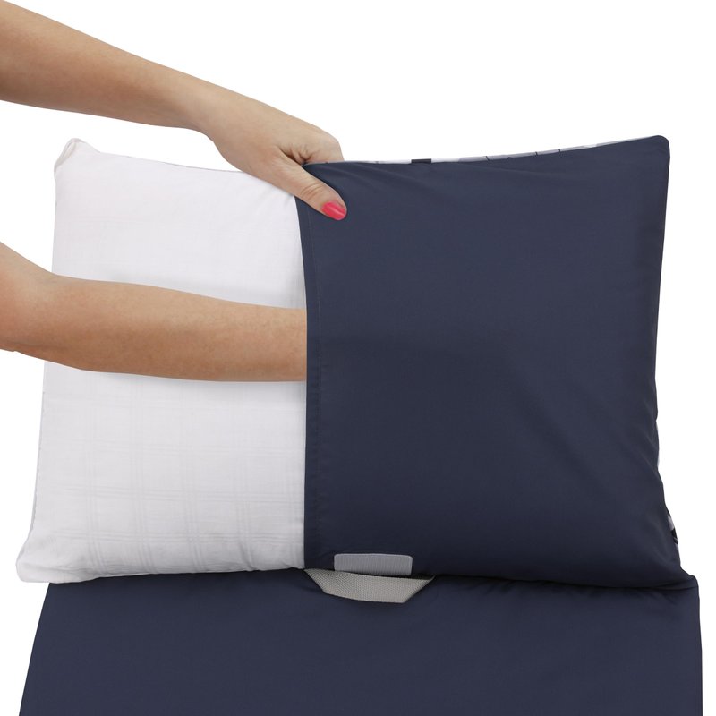 - Features an attached pillowcase that uses a standard size pillow (pillow not included)