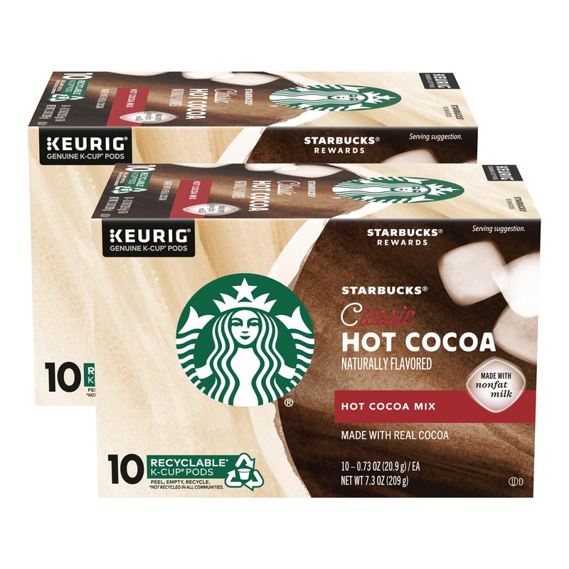 Starbucks Classic Hot Cocoa K-Cup Pods, Made with Real Cocoa & Nonfat Milk, K-Cup Pods for Keurig Brewing System, 10 CT K-Cups Per Box (10 Count (Pack of 2))