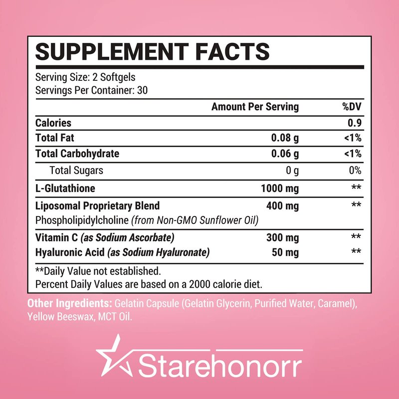 Starehonorr Liposomal Glutathione Softgels 1500MG, Reduced Glutathione Supplement with Vitamin C, Better Absorption, Non-GMO Powerful Antioxidant for Healthy Aging, Detox, Immune Health, 120 Softgels
