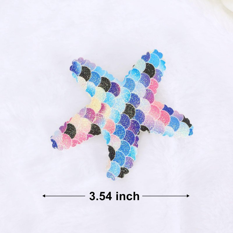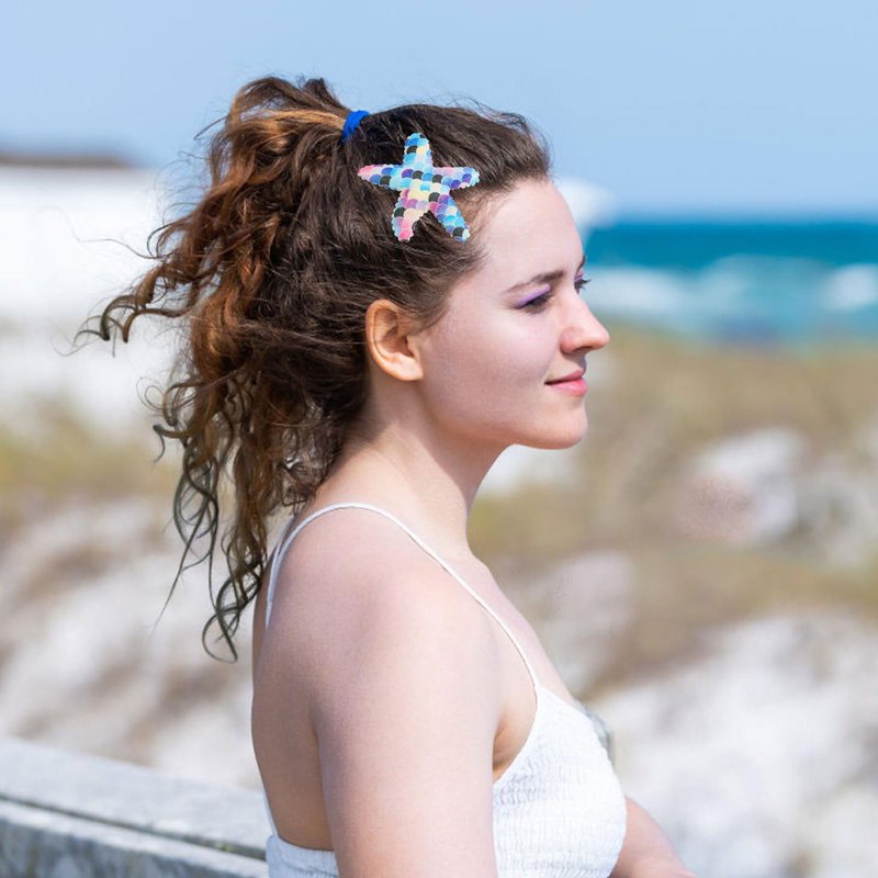 - Sparkle Star Hairpin: Made of glittery leather with laser colors, our sea star hair clips feature a unique mermaid scale design that catches light uniquely at each angle for a dazzling effect. The handcrafted, one-piece construction underscores our commitment to quality, ensuring each clip is both exquisite and distinctive