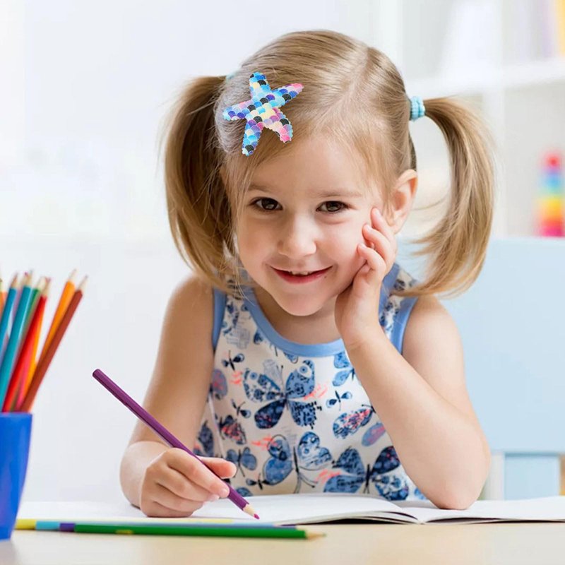 - Mermaid-inspired Starfish Hair Clips: Add a touch of whimsy with our 8-piece set of starfish clips, featuring a distinctive mermaid scale design in vibrant gradient candy colors like light blue, peach, pink, light green, orange, royal blue, green, and aqua blue as your choice. It's easy to match with your different style clothes