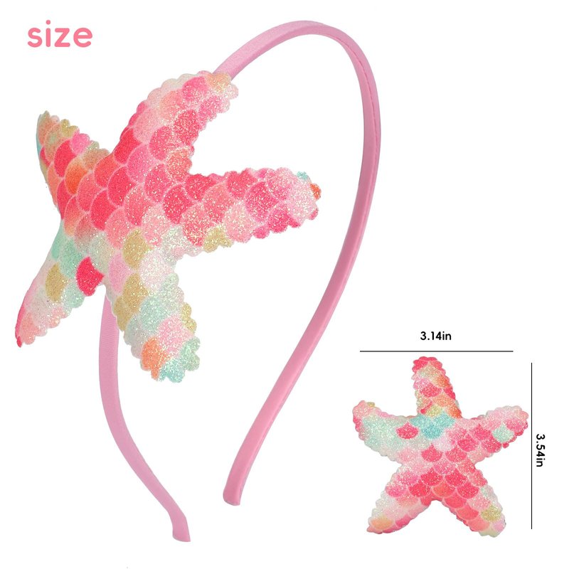 - Design Features: This pink headband features a cute starfish design, paired with mermaid scale details, laser glitter sequins adorn the surface, and shine in different light with a unique glow, adding a bit of charm and whimsical to your look