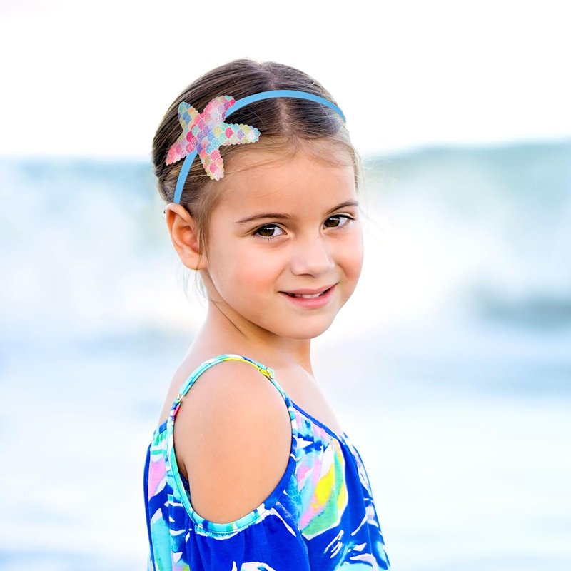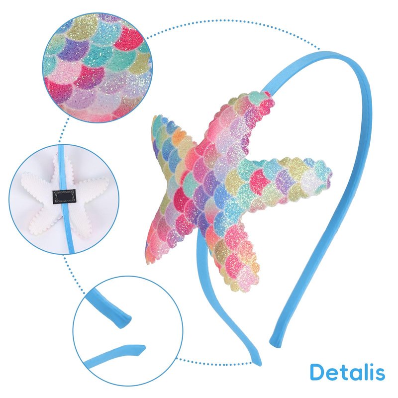 - Design Features: This blue headband features a cute starfish design, paired with mermaid scale details, laser glitter sequins adorn the surface, and shine in different light with a unique glow, adding a bit of charm and whimsical to your look