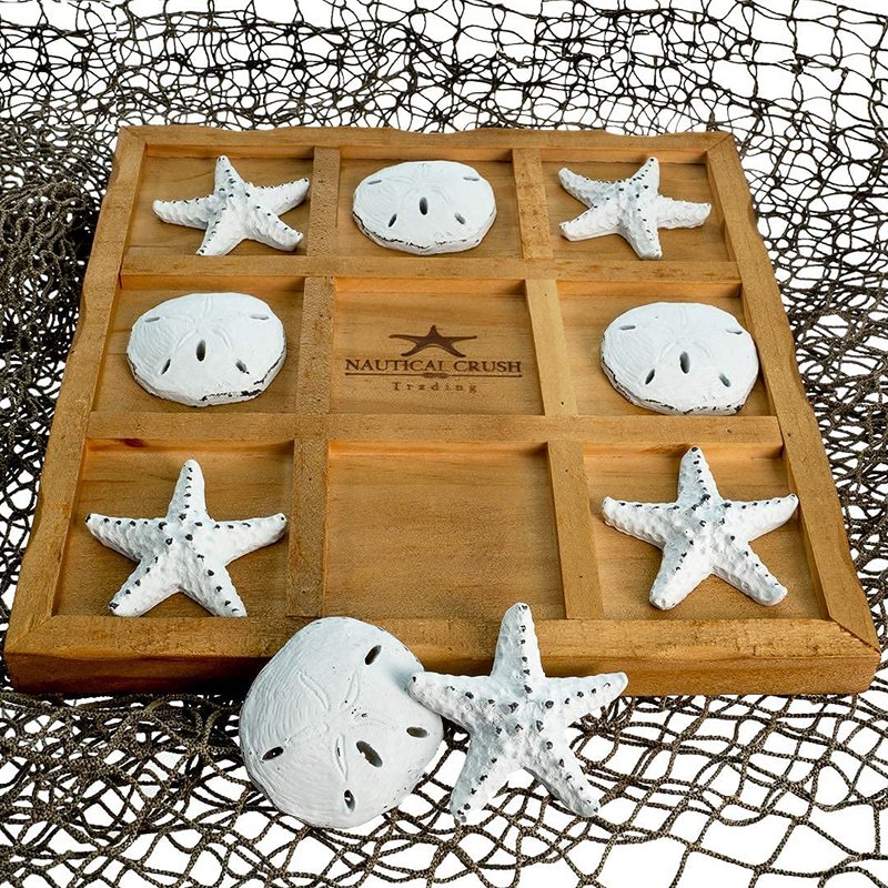 - FAN FAVORITE - Your friends and family will rave over this beach board games. The wooden tic tac toe game and resin nautical pieces feature a distressed beachy look to give an authentic nautical feel.