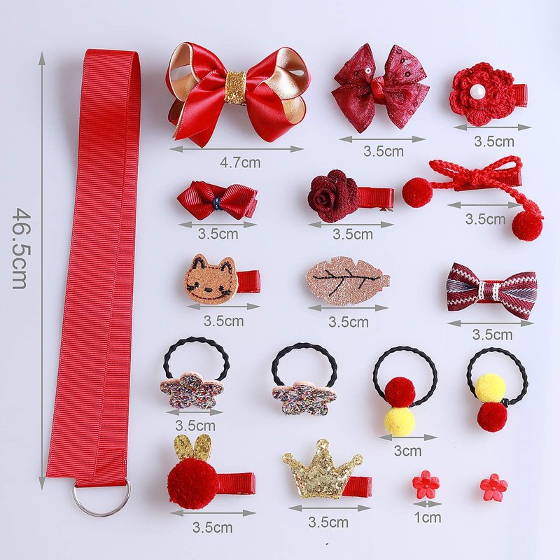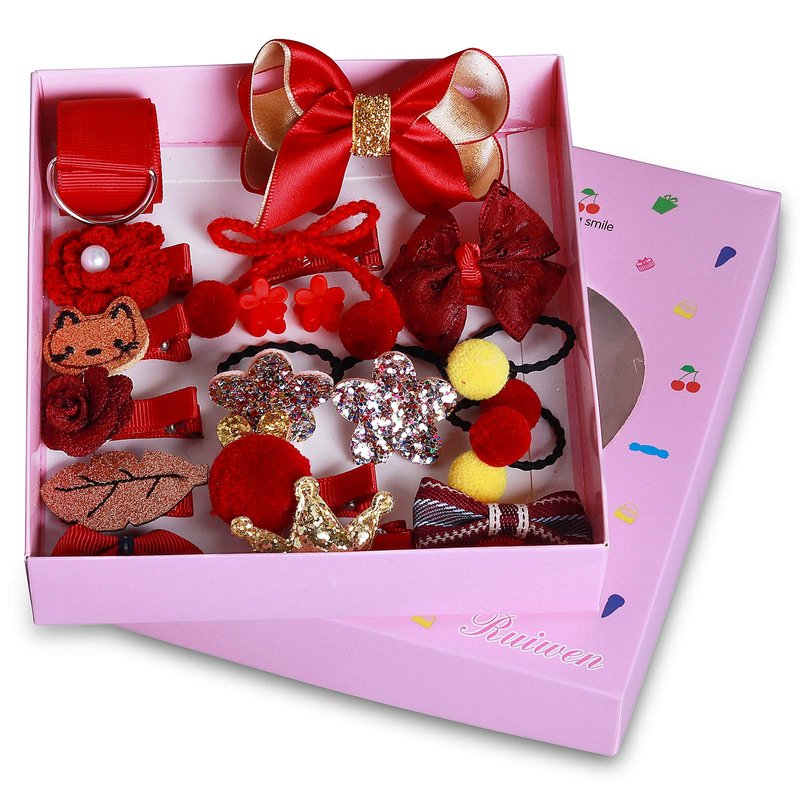 Starneey 18 Pcs Baby Hair Accessories Set Hair Clip Set Gift Box Cute Party Bowknot Flower Multi-Style Hairpin Ribbon for Little Girls Baby Toddler Kids-Red