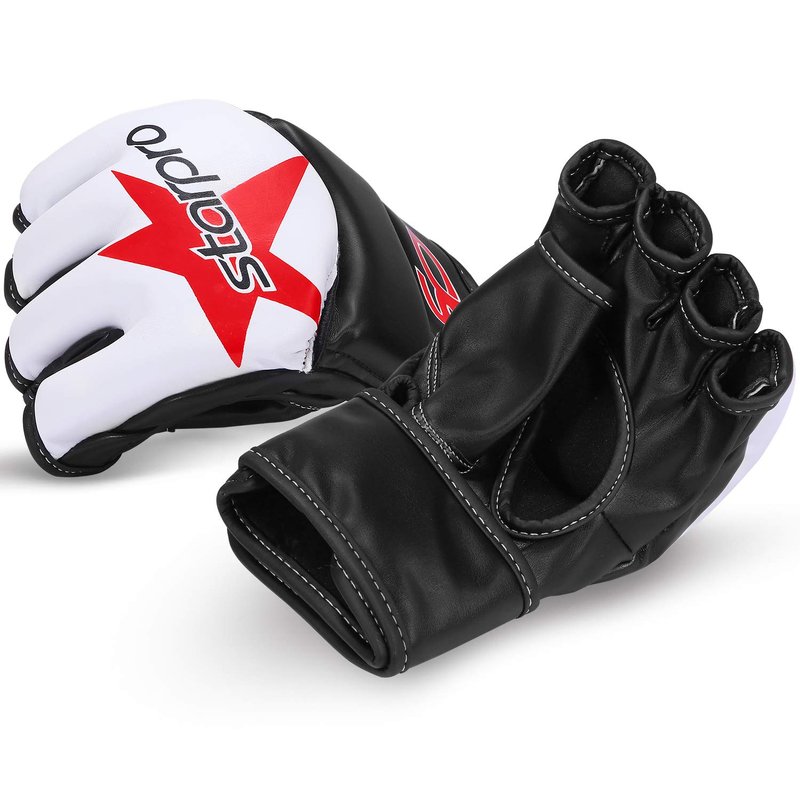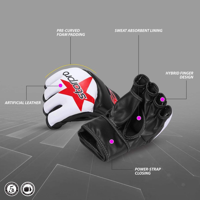 Starpro MMA Grappling Gloves Training - Good for Kickboxing Martial Arts Karate Combat Cage Fight Sparring Punch Bag Boxing Mitts | Synthetic Leather for Men & Women White & Red (White/Black, XL)