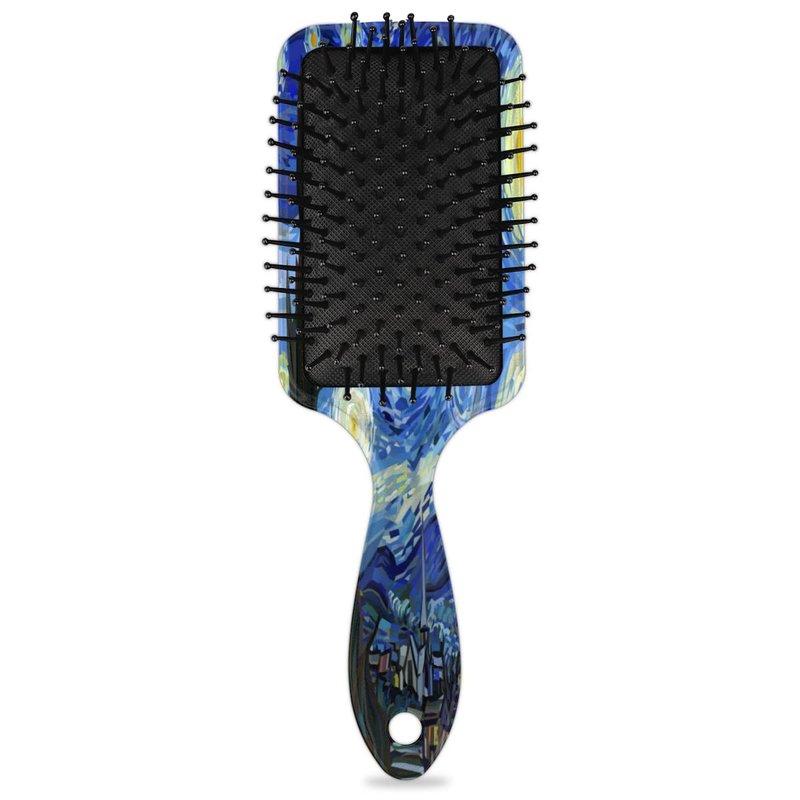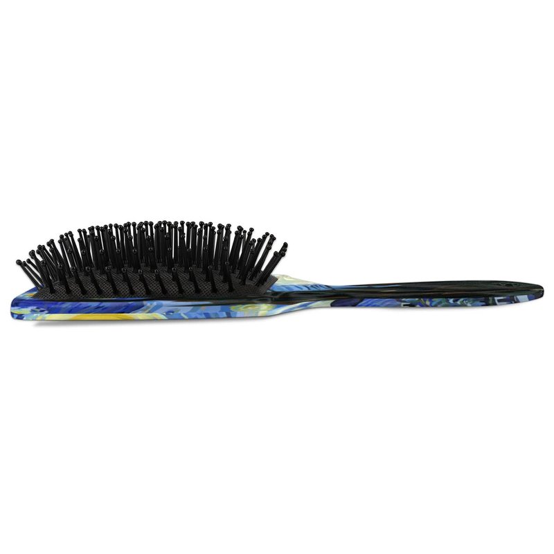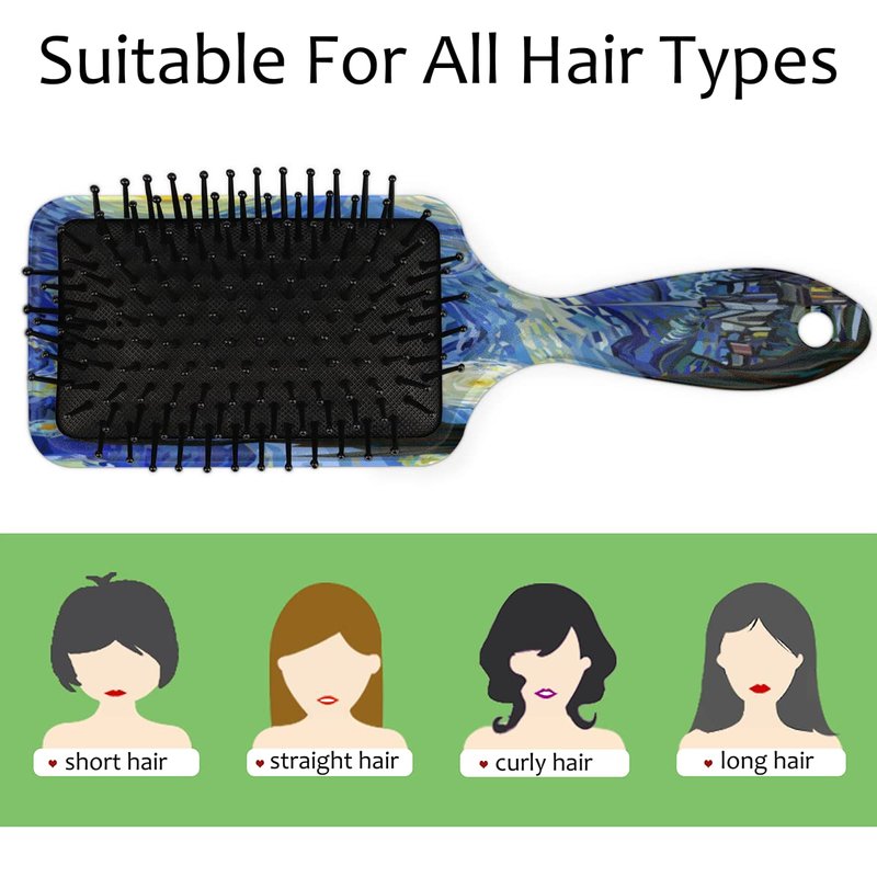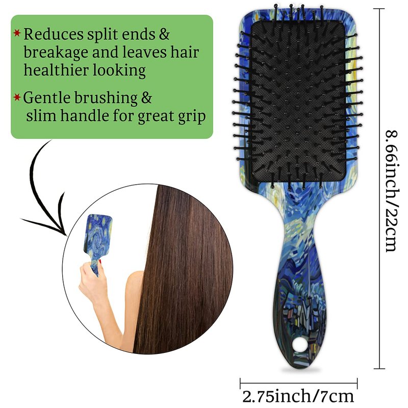 - Large Square-Shaoed Paddle Brush: Designed with a wide sturdy handle and comfortable grip, an air-cushioned pad embedded with smooth, round ball-ended bristles. Glides through tangles and knots with no tears. Massages the scalp.