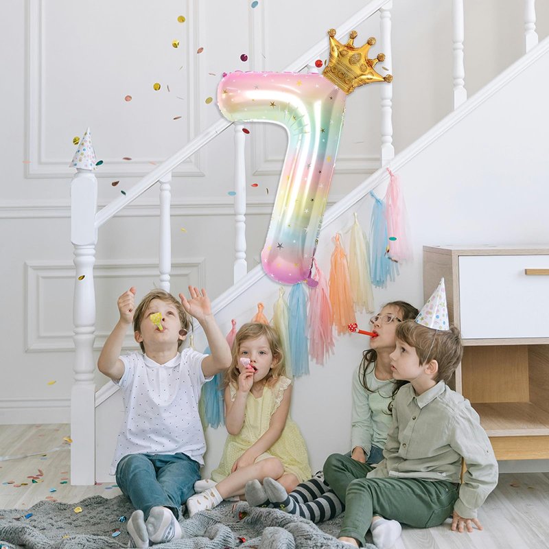 - 【PACKAGE INCLUDES】Stars Rainbow Gradient Number Balloons*1, Mini Crown Balloon*1, Straw*1, Glue Dots*10 (Connect the crown balloon to the number balloon)