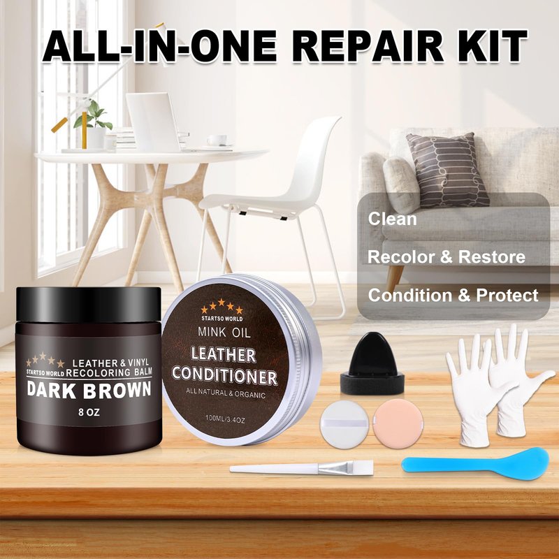- Leather Recoloring Balm & Mink Oil: Startso world Leather recoloring balm exclusive formulated to fast drying and easy to use,restore fading color leather furniture surface to its former glory. Polished leather with Mink oil will make a longer lasting finish.