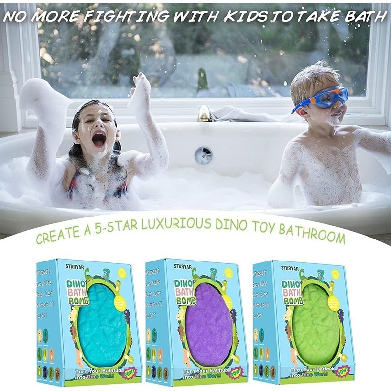 - Easter basket stuffers and XXXL Dino Egg Bath Bombs Set: STARYAR kids bath bombs gift set can be used as easter basket stuffers for kids, Easter eggs, Easter bath bombs. include a dino egg bath fizzies(6.35 OZ) with a dinosaur toys inside, extra-large bath bombs and dino toys are more safe for kids age 3, 4, 5, 6 ,7, 8, 9 year old.
