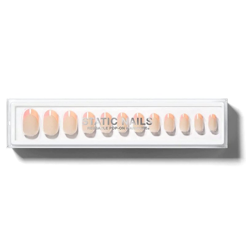 Static Nails Reusable Pop-On Manicure Set, Non-Damaging Glue-On Nails (Blended French Sunset Round) - False Nails with Static Nail Glue, Nail Set, Fake Acrylic Press On Nails