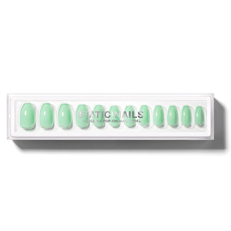Static Nails Reusable Pop-On Manicure Set, Non-Damaging Glue-On Nails (Mint Money Coffin) - False Nails with Static Nail Glue, Nail Set, Fake Acrylic Press On Nails