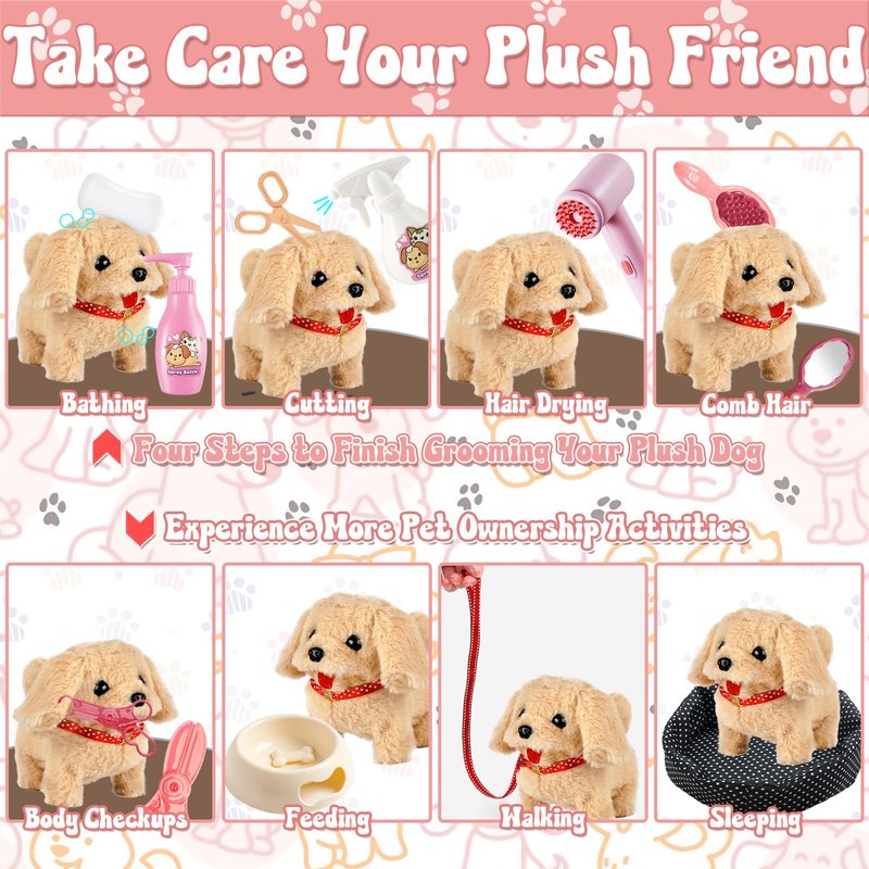 - Novelty Role Play Gifts: It is a realistic and vivid interactive dog toy set for kids. They will love the electronic plush dog that can walk, bark, and wag its tail. It is a novelty vet play gift for 3 4 5 6 7 8 years old boys and girls. Let kids have fun role-playing and simulating pet ownership with their friends and parents.