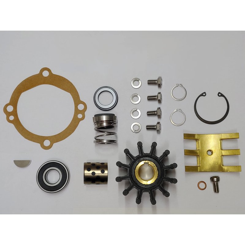 Major Repair Kit for rebuilding the raw water pump on many Crusader engines. This kit uses a graphite plugged brass bushing to replace the solid black graphite one that can break on installation. Bearing has a premium C3 ABEC 3 rating. Mechanical Seal is made of long lasting 316 Stainless Steel and is suitable for salt water use. Impeller Specifications: Width: 1-5/8" (41.2mm) Diameter: 2-9/16" (65mm) Shaft: 5/8" (16mm) Drive: 3/16" key Material: Neoprene Silhouette: 12 blades