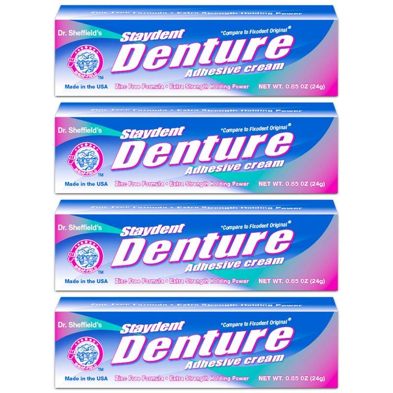- Four Tubes of Staydent Denture Adhesive Cream (.85 Ounces Each)