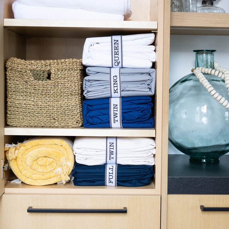 - Organize your Linen Closet - Clearly labeled: Full, Twin, Queen, King so that you can easily identify your bed sheets by size! These sheet set organizer bands will tidy up your linen closets in no time!
