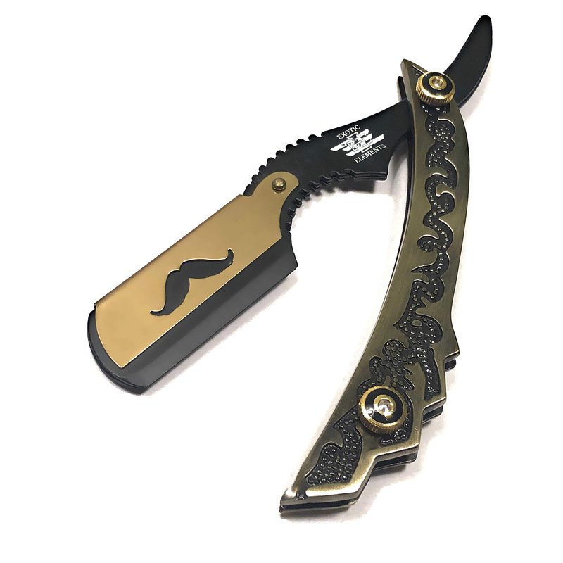Steel Handle Straight Edge Barber Shaving Razor Limited Edition In Bronze Gold