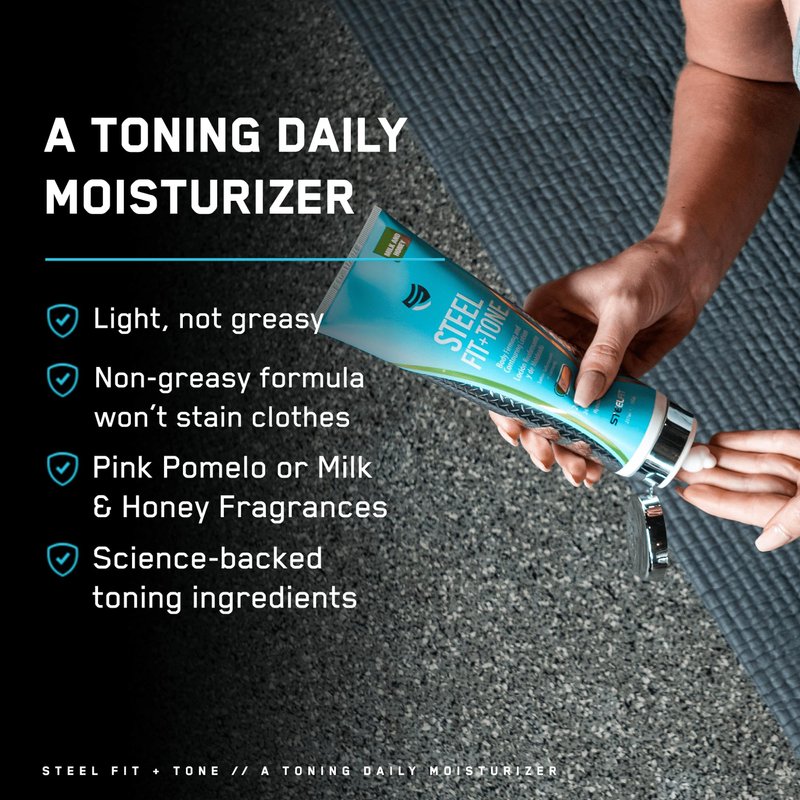 - ADVANCED SKIN FIRMING & TIGHTENING — Get your body in perfect shape with Steel Fit + Tone, a revolutionary 24-hour moisturizing firming body lotion expertly crafted with natural ingredients for skin firming and contouring. Achieve a sleeker silhouette, smoother skin, and radiate confidence whether you're at the gym or out on the town, Steel Fit + Tone is your go-to lotion.