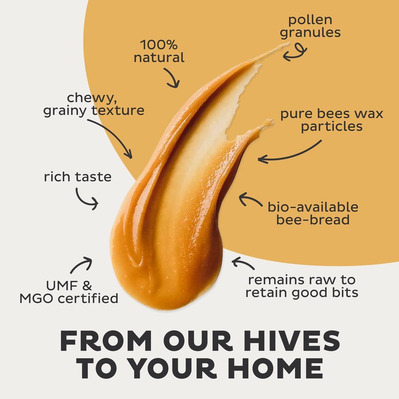 - RAW & UNPASTEURISED - our Scrape & Separate method ensures a pure raw honey with a crystalline structure as well as a unique taste. Pure enjoyment.