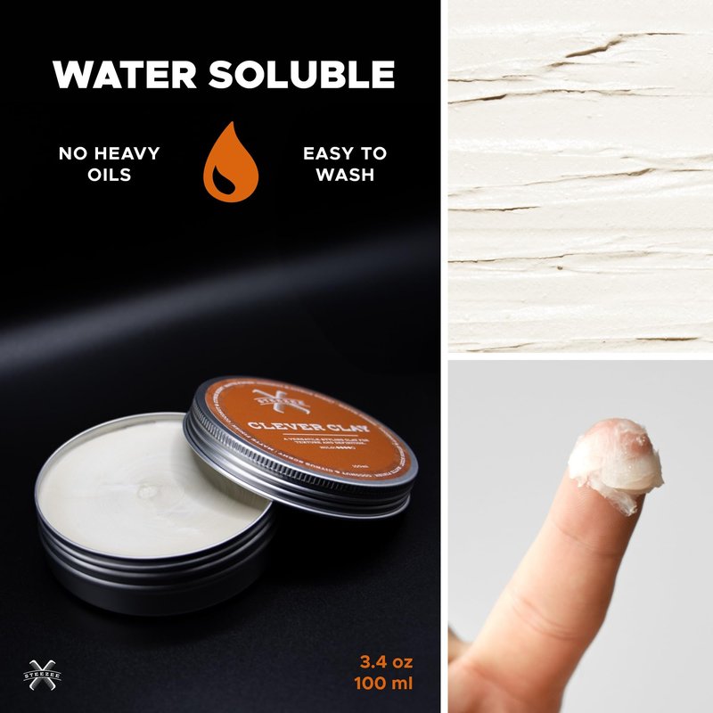 - ✅WATER BASED & WATER SOLUBLE: No heavy oils or hard to wash out ingredients. Clever Clay is made of ingredients that will make the hair feel soft to touch, hold all day, and wash out with water alone. Use shampoo if needed to get all product out!