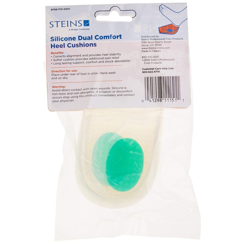 Steins 768-1115-0001 Silic Dual Comfort Heel Cushion, Women's (7-1/2 - 9) or Men's (6-1/2 - 7), Green, Women's (7-1/2 - 9) or Men's (6-1/2 - 7)