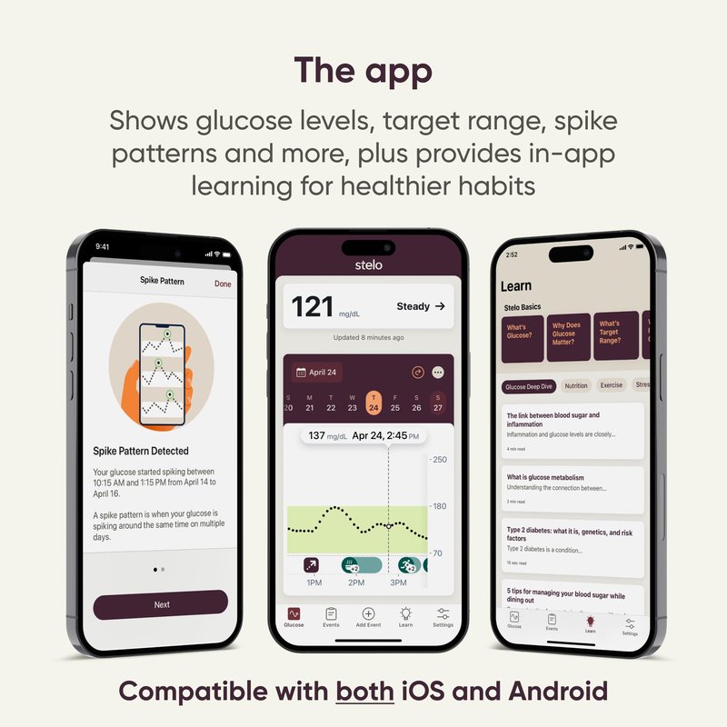 Stelo Glucose Biosensor & App by Dexcom - A Leader in Continuous Glucose Monitoring (CGM). 24/7 Tracking & Personalized Insights to Reveal Patterns. 2-Pack (Up to 15 Days Each). iOS & Android.