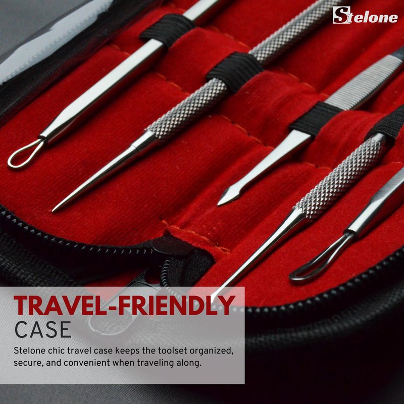 Stelone Pimple Extractor Kit - Professional Blackhead & Acne Tools for Face and Body - Stainless Steel Comedone Extractor Set with Case