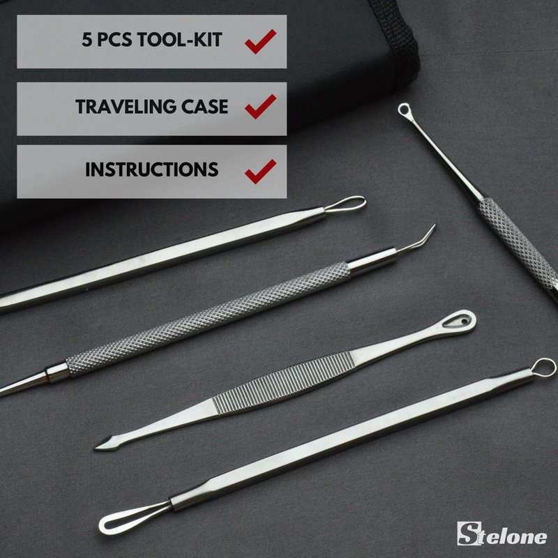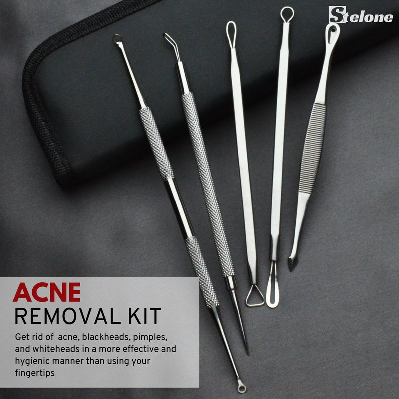 - Professional pimple extractor kit with tools for removing pimples, blackheads, whiteheads, cysts, and other blemishes from your face and body