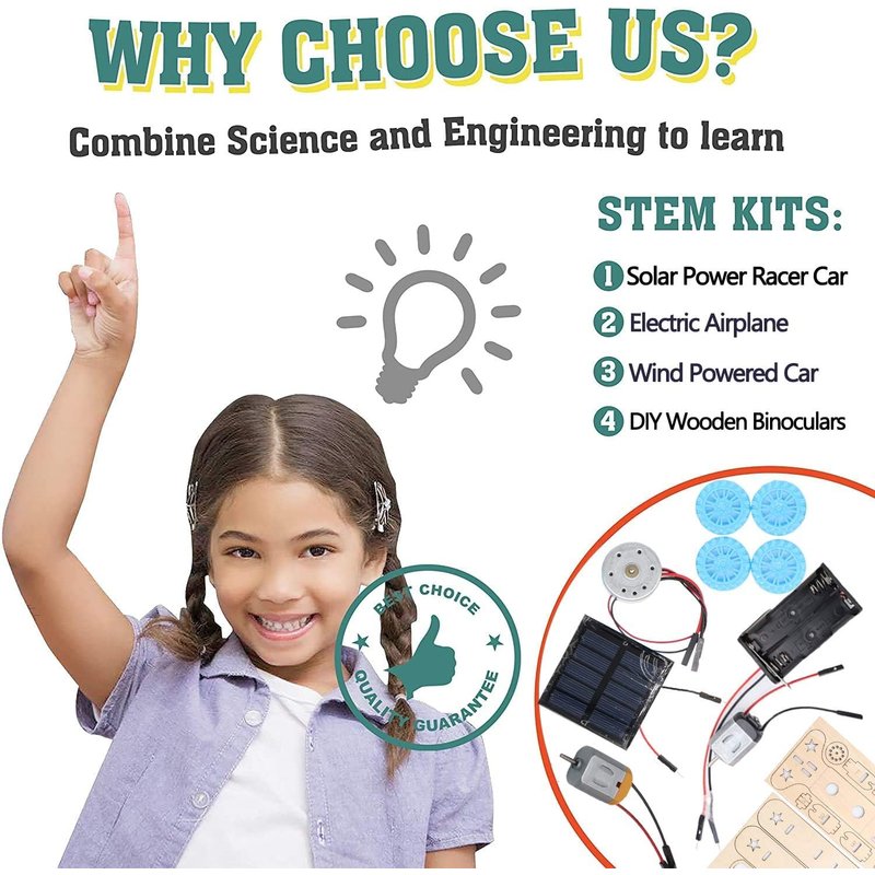 - 【Encourage STEM Learning】The race car is powered by a solar panel, the wind car, and the biplane glider are powered by battery and motor.The binocular is designed for kids to observe our world by giving him a wonderful tool for exploration