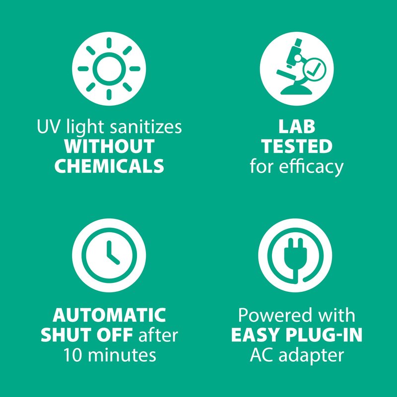 - Everyday Protection: The UV light sanitizer reduces 99.9% of harmful microorganisms in minutes ; it cleans and sanitizes without liquid chemicals; the auto-shut off mechanism prevents UV light from emitting without the protective barrier