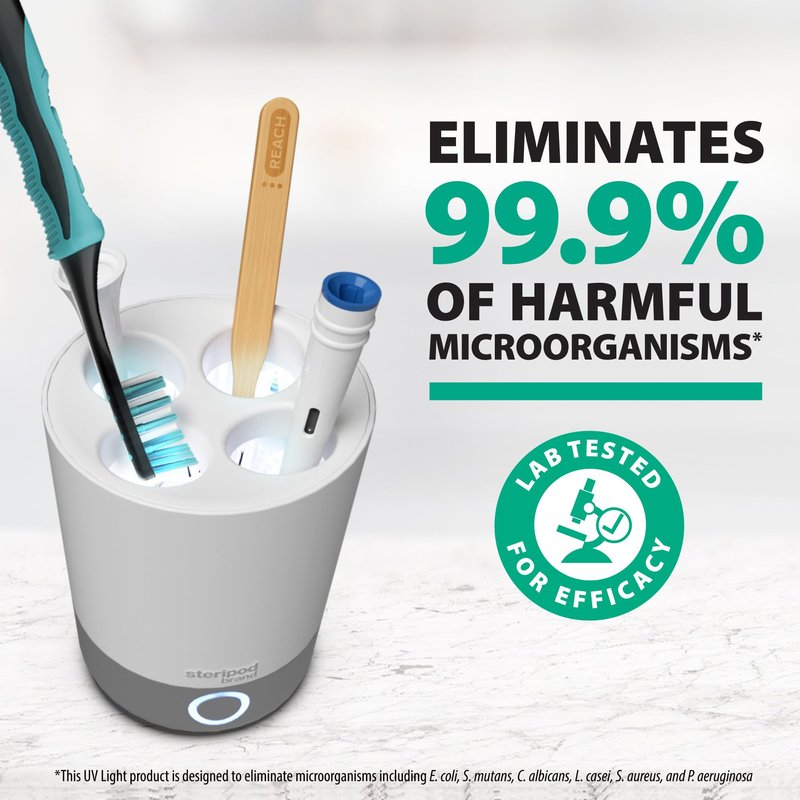 Steripod Brand UV Home Countertop Toothbrush Sanitizer, Reduces Harmful Microorganisms, Toothbrush Holder and Cleaning Station, Holds Four Toothbrushes