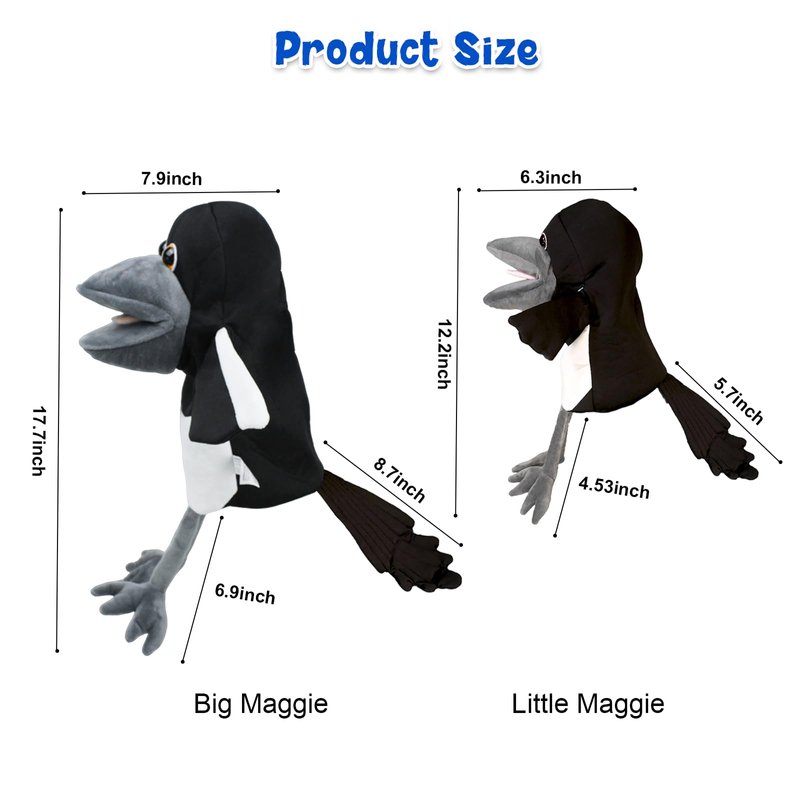 - MADE OF PREMIUM QUALITY MATERIALS — Magpie plush toy is crafted from washable, child-safe fabric. Our puppets are durable for endless play. The magpie puppet’s hollow body allows effortless manipulation, allowing you to animate this soft toy with ease using your hand and fingers.