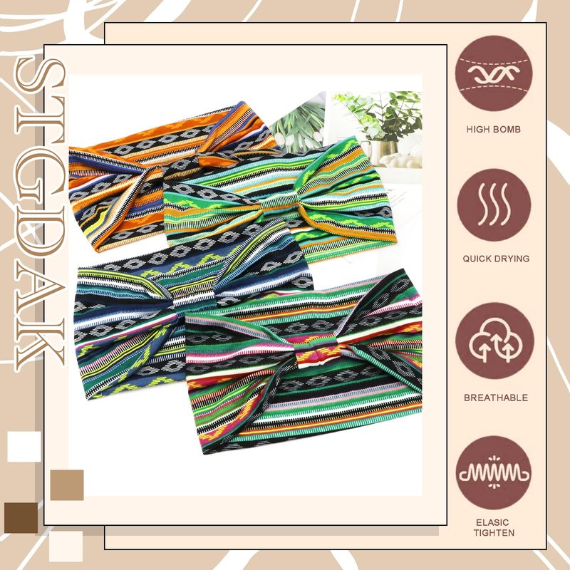 STGDAK Boho Headbands for Women African Striped Hair Band Wide Hair Wrap Trendy Knotted Hair Bandana Elastic Fabric Head Turbans Yoga Running Sports Workout Hair Accessories for Women Girls 4PCS