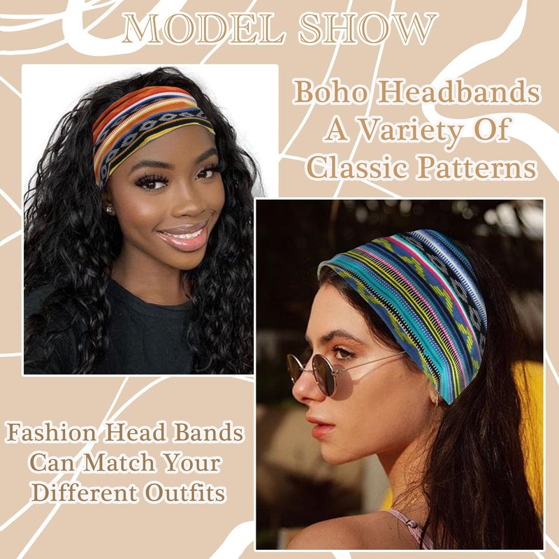 - ❤Fashion Head bands for women Design: The Exquisite And Lovely Bohemian Print Headband Makes You More Fashionable And Elegant. There Are 4 Different Designs And Colors For You To Choose To Match Different Clothes. The Hair Band Can Be Used In Many Occasions, Suitable For All Seasons