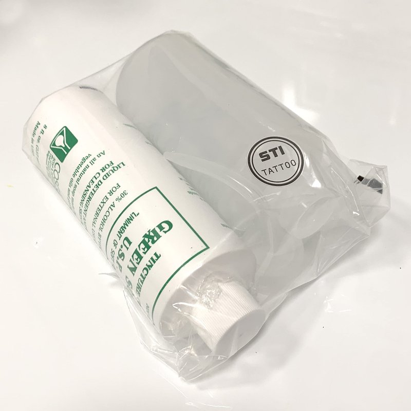 1 Bottles 8 oz COSCO Green Soap with 8 oz squeeze wash bottle. . - COSCO Pure Green Soap 8 fl ozCOSCO Green Soap is the most trusted sanitation product in the tattoo industry today. -Used to prep skin pre-tattoo, for stencil application, and even post-tattoo cleansing, Green Soap should be found in any professional Tattoo shop. - Green soap is made with natural vegetable oils, lavender, is biodegradable, and environmentally safe and made in the USA.